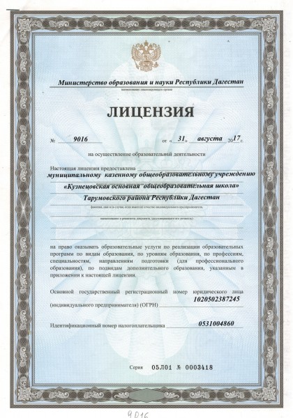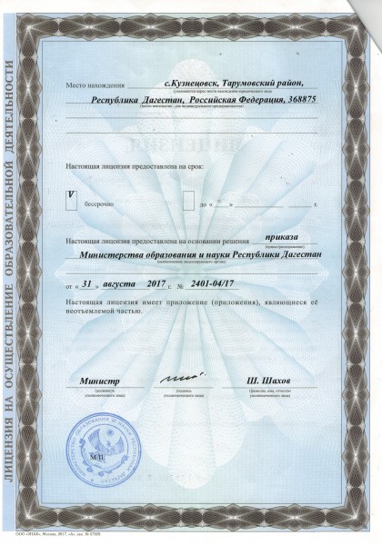 | Адрес местонахождения образовательной организации* | 368875 Республика Дагестан, Тарумовский район с. Кузнецовск |